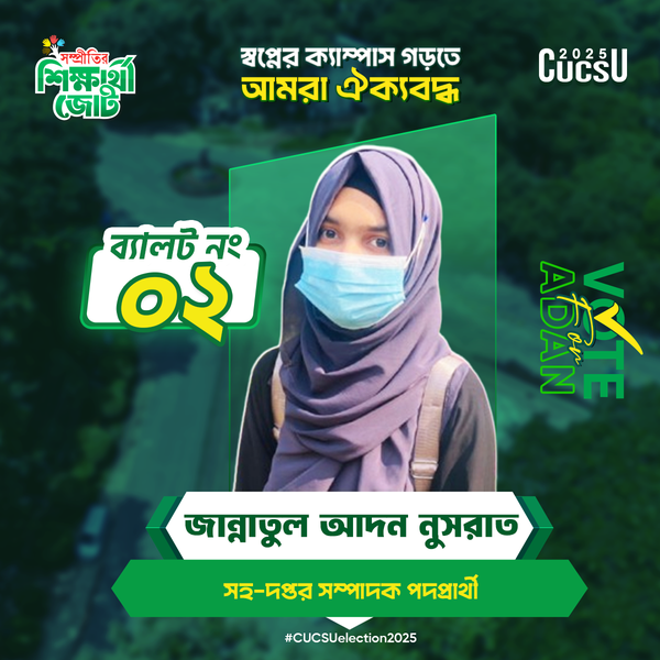 একইসাথে ভদ্র ও বিপ্লবী, বিনয়ী ও দৃঢ়, নম্র ও কঠোর ক্যারেক্টারিস্টিক্স ধারণ করা জান্নাতুল আদন নুসরাত যেকোনো অসংগতি, বৈষম্য ও অন্যায়ের বিরুদ্ধে সবসময় ছিলেন পরিচিত কণ্ঠস্বর।