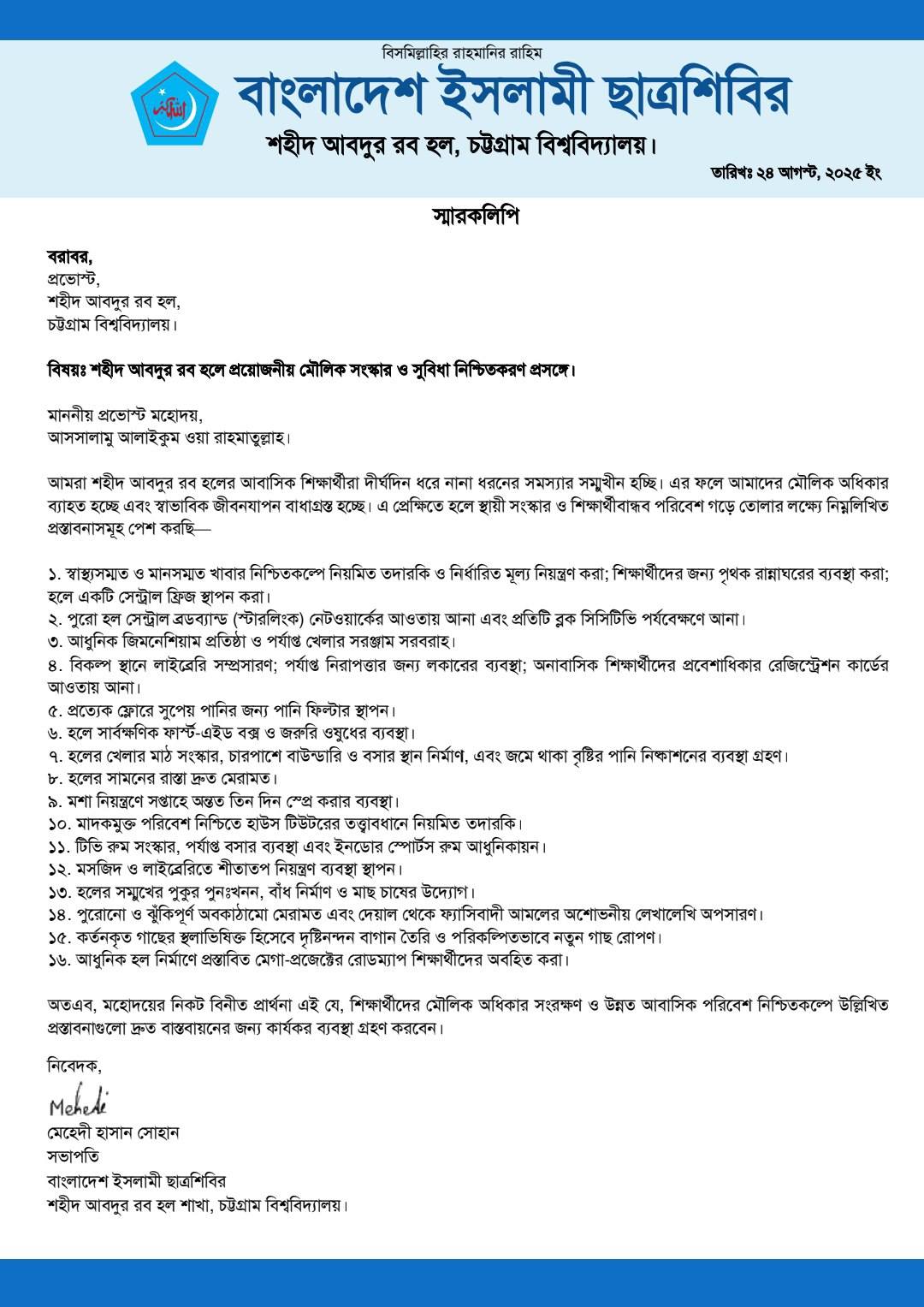 জাতীয় আন্তর্জাতিক ইস্যুতে চবি শিবির